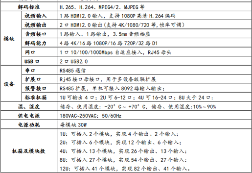 机箱结构(插卡) | 输出接口 | 输入接口 | 音频输入/输出 | 自适应网口 | 功能 |